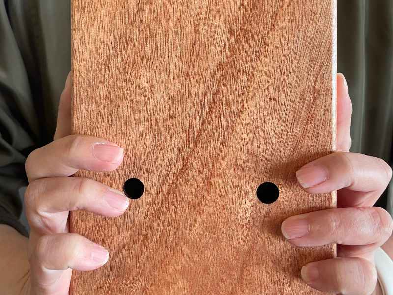 私の持っているカリンバの背面には「穴」が開いているのですが、そもそも「穴」がないカリンバもあります。
