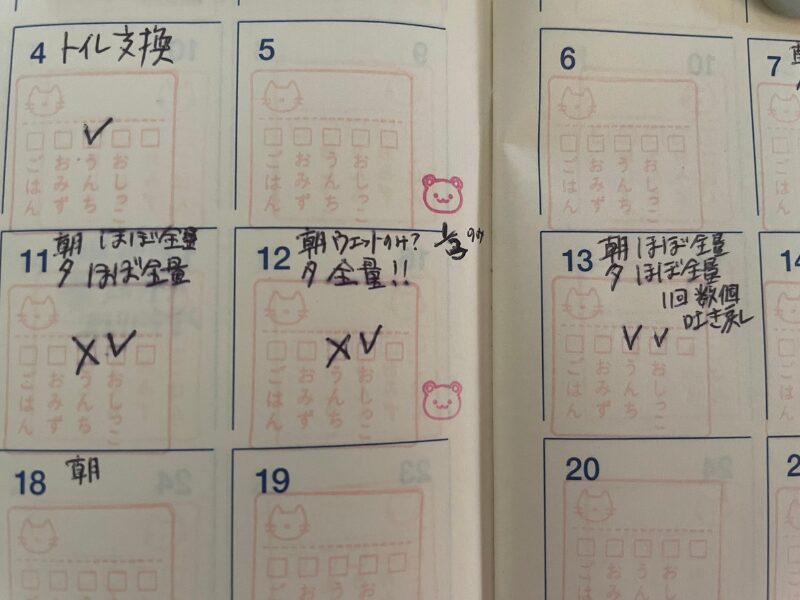 • ロルバーンノートダイアリーは猫(しじみ)の健康管理手帳として使う。