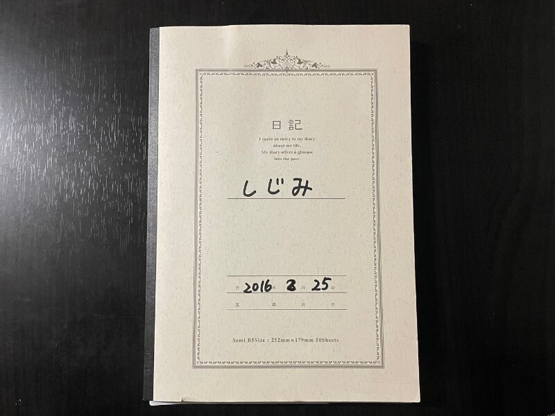 しじみ(猫)に関しては、何か大きな出来事があったとき(病院へ連れて行ったとか)に記録する「しじみノート」という記録帳があります。